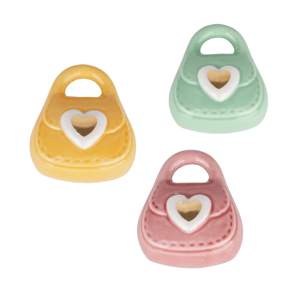 Elegante e raffinata, la borsetta in ceramica magnete è un’idea originale e di stile, proposta in 3 colori assortiti. Un piccolo dettaglio decorativo che unisce estetica e funzionalità, perfetto come bomboniera o pensiero speciale.
