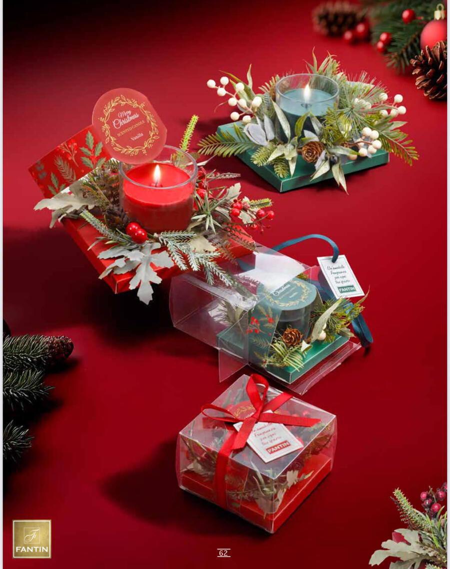 Cera profumata piccola Rossa con Rami di Pino e pacco regalo by ”Fantin argenti”