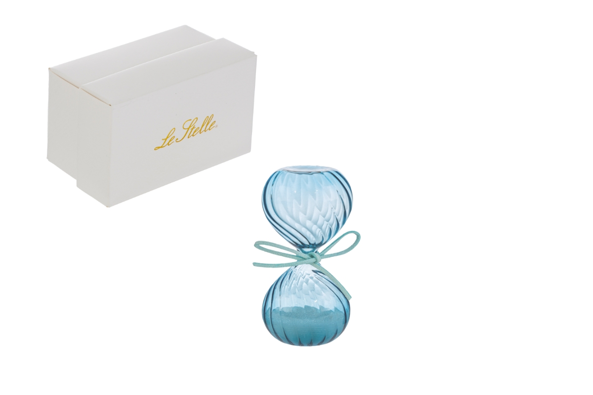 Un dettaglio di classe per il tuo spazio: questa clessidra in vetro, dal delicato colore celeste e misura di 8 cm, รจ perfetta come elemento decorativo o regalo raffinato. Fornita in un pratico astuccio, unisce eleganza e funzionalitร senza tempo.