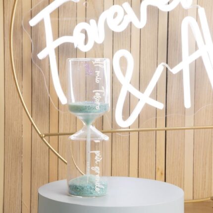 Clessidra in vetro borosilicato Con sabbia che si dissolve lentamente. Personalizzata con il decoro di una coccinella e frase buon augurale. Perfetta come bomboniera per laurea o altre occasioni speciali, questa clessidra aggiunge un tocco di magia e significato a ogni evento