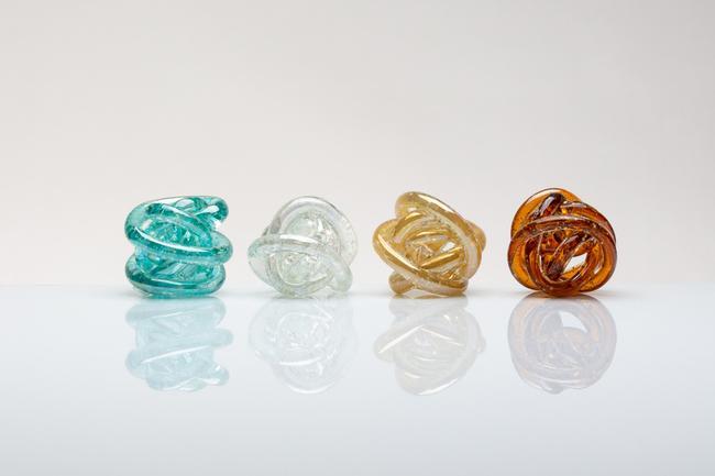 nodo in vetro con scaglie fluorescenti luminose al buio assortito in 4 colorazioni diametro 7cm con scatola personale *AZIENDA SOLIDALE*