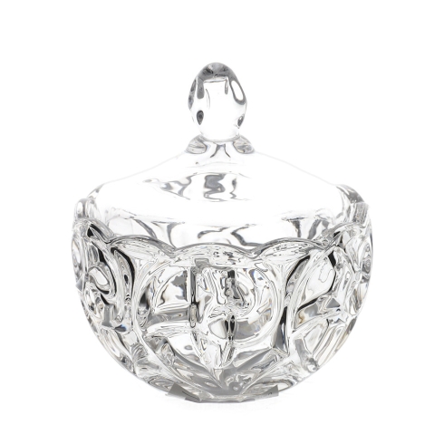 Portabonbon in vetro con decoro ricciolo in rilievo