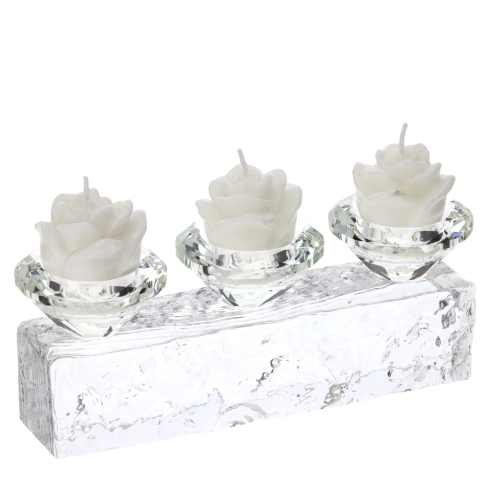 BASE BARRA VETRO ICE C/3 CAND.ROSA BIANCHE
