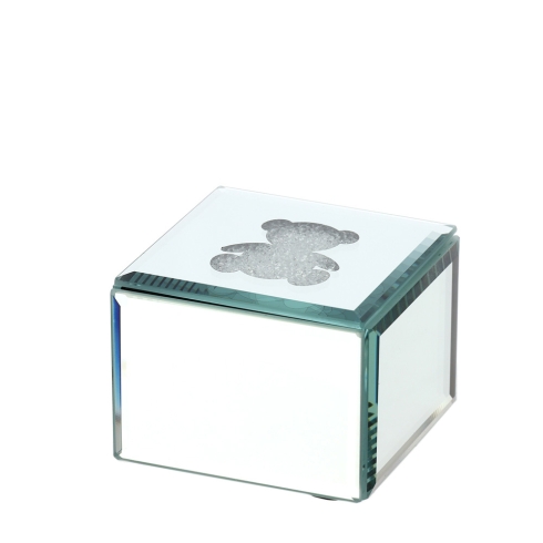 portagioie in vetro specchiato e interno in velluto con intaglio orsetto e microcristalli