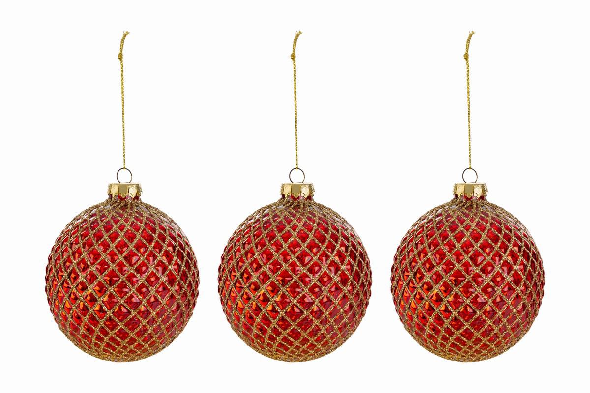 set 3 palline rosse con glitter oro in vetro diametro 10cm