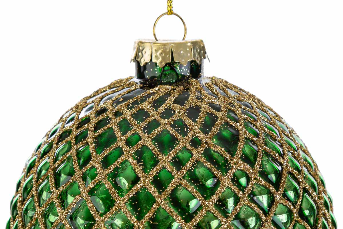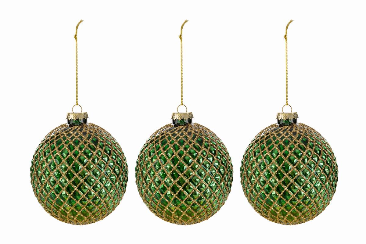 set 3 palline verdi con glitter oro in vetro diametro 10cm