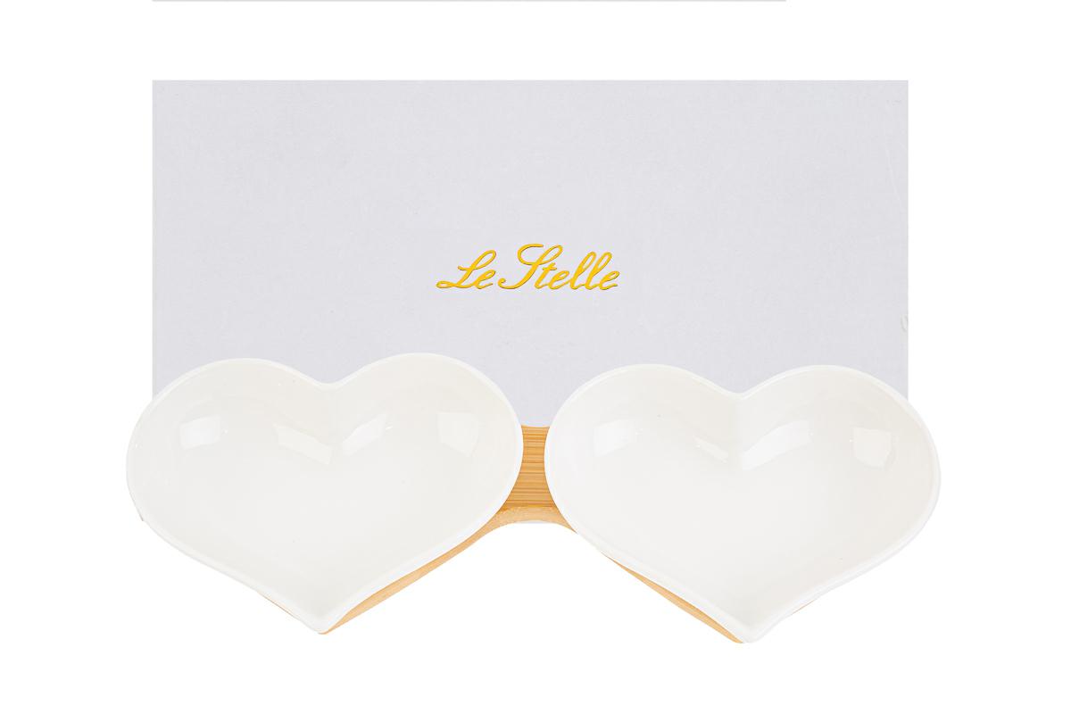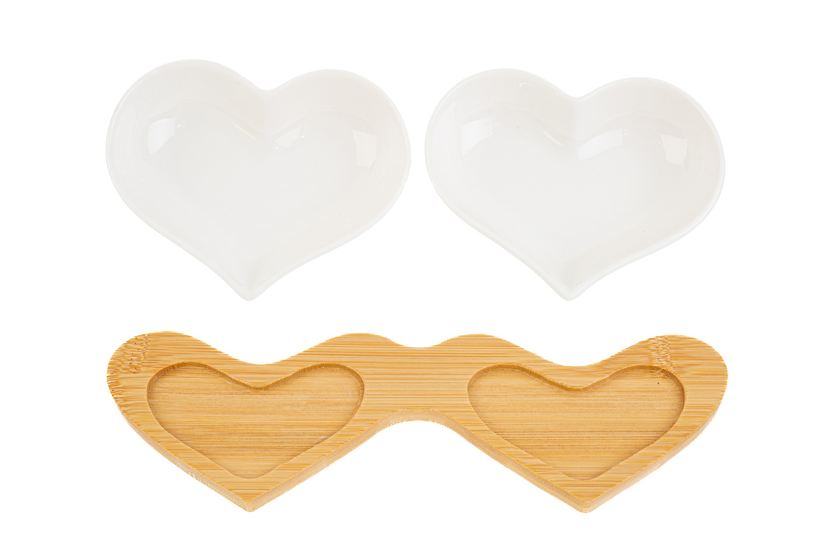 Linee eleganti e design romantico definiscono questo set di ciotole a forma di cuore in porcellana, dimensioni 25,5ร10,5xh.4 cm. Perfette come bomboniere per matrimoni, coniugano stile e funzionalitร . Fornite in un raffinato astuccio, aggiungono un tocco di classe a ogni occasione speciale.