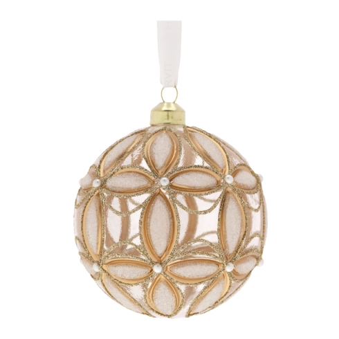 sfera dipinta a mano in vetro con decoro oro e bianco con scatola regalo by hervit