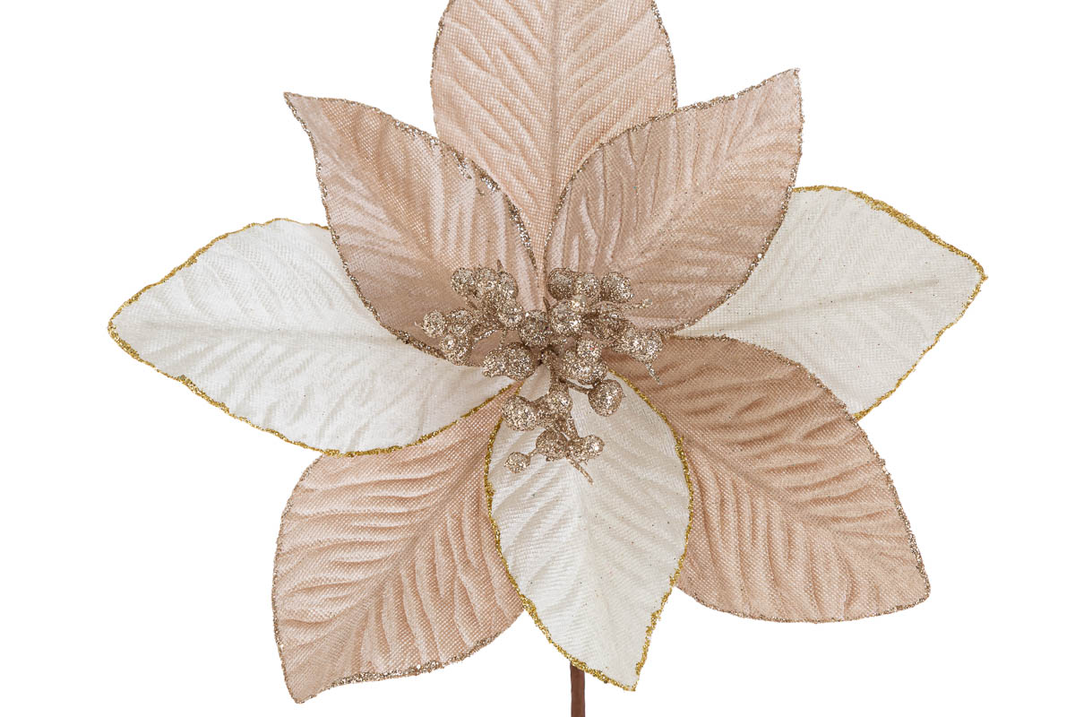 stella natalizia velvet colore panna e champagne con pistillo glitterato oro