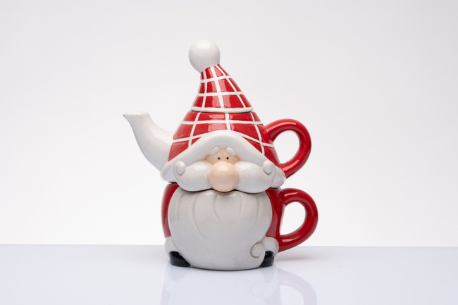 tisaniera con tazza a forma di babbo natale in ceramica. Un’originale idea regalo. Con gli oggetti Cuorematto sostieni l’Antoniano di Bologna, che dal 1991 finanzia in tutto il mondo la realizzazione di opere a sostegno dei più deboli. cm 17 h.